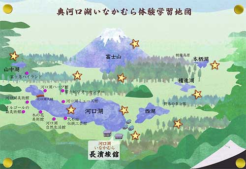 河口湖美術館 富士山を題材にしたすぐれた絵画や版画、写真等を常設している他、企画展も開催されています。敷地内には芝生広場や自然公園などもあり、人と自然とアートがふれあえるスペースです。 大石紬 伝統工芸館 江戸時代から伝わる草木染めの伝統を受け継ぎ、一貫した手作業で今も大石紬を織っています。しなやかでふんわりした風合いが特徴です。工芸館では作業風景の見学や商品展示コーナー等があり、又、ハーブ染めや手織りの体験教室が開催されています。 河口湖ミューズ館[与勇輝館] 日本が世界に誇る人形作家として、国内外で高い評価を受けている与勇輝(あたえ・ゆき)氏の作品を展示しています。「布の彫刻」と賞賛される氏の作品は、今にも息づかいが聞こえてくるような迫真性をもって、見る者を魅了します。 オルゴールの森美術館 高級オルゴールの自動演奏器のコレクションとプラハ市の交響楽団との特別提携による一流のカルテットの演奏が常時鑑賞できる美術館。中世貴族の館を再現した建物の中で、美しく豊かな音楽の世界を楽しめます。 河口湖木の花美術館 猫のダヤンが活躍する楽しい絵本でお馴染みの池田あきこさんの原画常設館。短編アニメの小さなのぞき穴劇場やダヤンコーナーなどもあります。 富士急ハイランド 富士急ハイランドといえば、「FUJIYaMa」と言われるほど人気が定着した絶叫コースターが目玉。機関車トーマスのテーマパーク「トーマスランド」は子供達に大人気。 河口湖ハーブ館 洋風の瀟酒な建物に入るとやさしいハーブの香りにつつまれます。館内のハーブガーデンでは100種類を越えるハーブがあり、2階の工房ではハーブ染めやアレンジフラワー、押し花などが体験できます。 河口湖自然生活館 河口湖北岸、大石公園内に自然の素材を活用して、生活に密着したものを創造していこうという自然生活館。季節によってはブルーベリーの摘み取りもでき、一日体験ジャム作り(ブルーベリー・ラズベリー・アンズ)は人気です。 山梨県立 富士ビジターセンター 富士山に関する自然環境を紹介する施設。富士山の成り立ちや気候を写真パネルなどを使い説明、また古代を再現したジオラマや室内植物園、富士山周辺の立体模型などがあり、富士山に生息する動植物や鉱物などをわかりやすく解説しています。 |