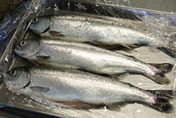 ※姫鱒(ヒメマス)の漁期にあたる、3月~5月と10月~12月は特別料金にて富士姫まぶしを提供いたします。通年提供できる虹鱒(ニジマス)より身がしまっており、香りも強いのが特徴です。 ヒメマスの入荷状況については当館にお問い合わせください。